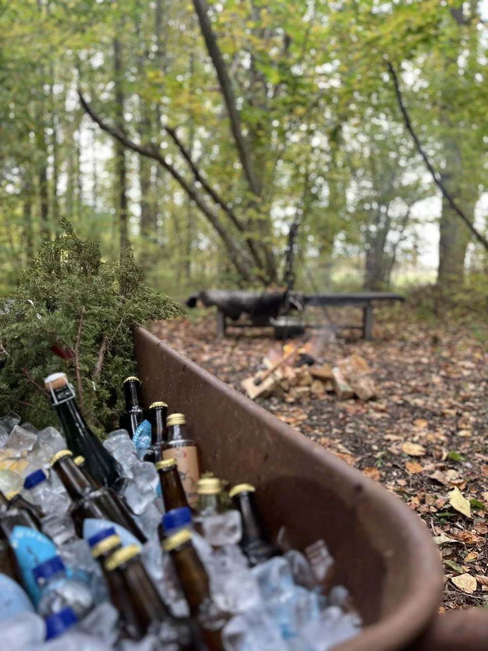 Efter jakten väntade en utomhuslunch med grillade gotländska korvar, följt av kaffe och hembakat fika i höstsolen. En varm, genuin och avslappnad stund – perfekt för samtal utanför mötesrummet.